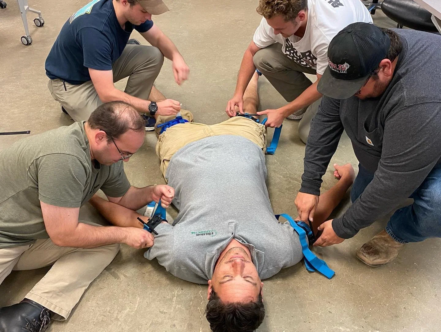 Students participating in a tourniquet drill in class.
